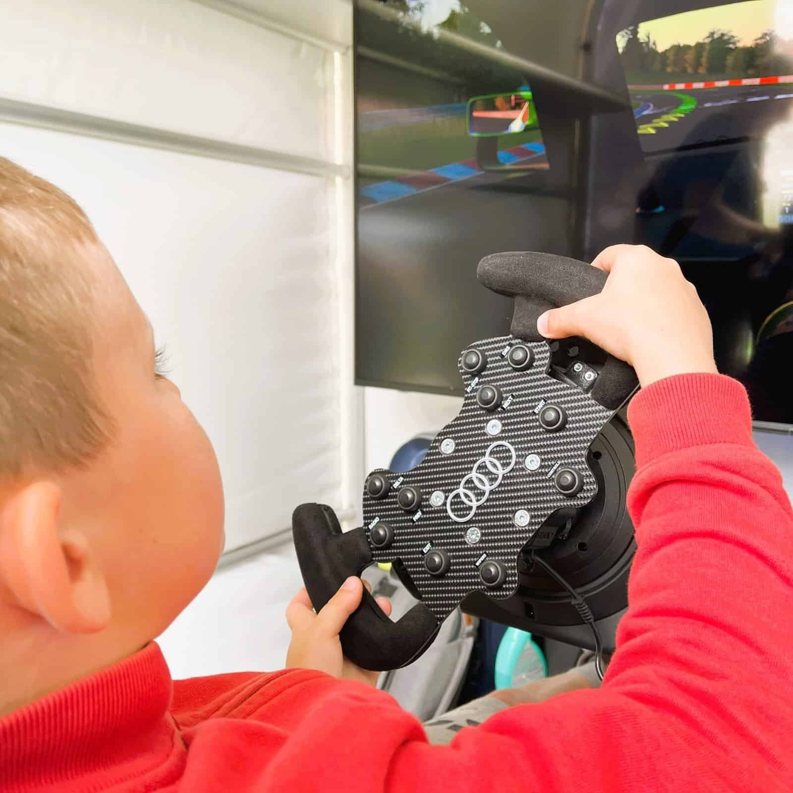 Our compact motion simulator fits great inside an Airclad X mobile stand provided by Audi. We went to unique locations, including an international snowboard SnowJam festival on a ski slope or a classical music festival in the historic city’s centre. Each visitor could pick between a Virtual Reality or a big screen to enjoy Audi immersive brand activation. We ensured that controls were approachable for kids, teenagers, and adults regardless of the racing experience.